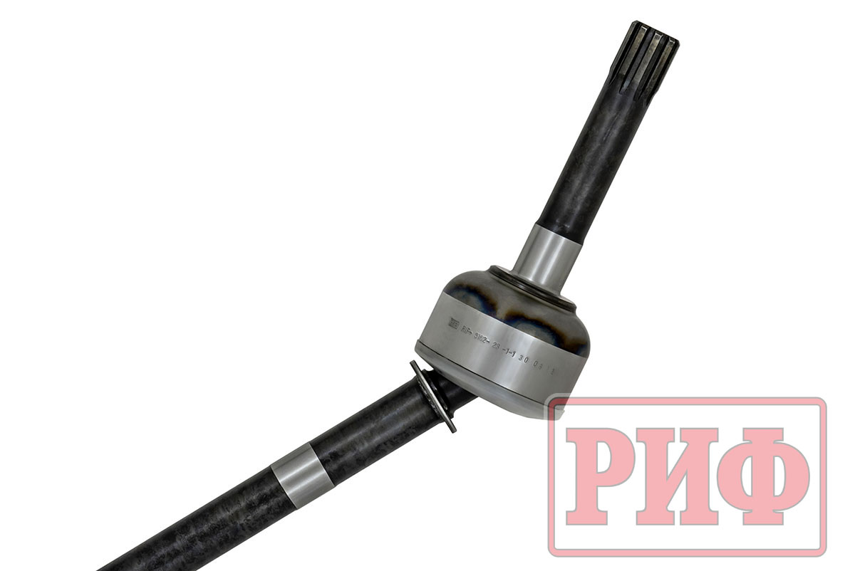 По этой причине к выбору ШРУСа нужно подходить максимально тщательно. Если внедорожник нестандартный, на нем установлены колеса большого диаметра, увеличена мощность двигателя и (или) передаточные числа трансмиссии, то нужно использовать усиленный шарнир, так как крутящий момент, передаваемый ШРУСом значительно возрастает. Усиленный ШРУС РИФ почти в два раза превосходит по характеристикам заводской шарнир по передаваемому крутящему моменту (8500 Нм против 4800 Нм). Максимальные углы работы - 47 градусов. Он выполнен с высокой точностью из качественной конструкционной легированной стали с закалкой токами высокой частоты. На выходе с производства все изделия проходят обязательный контроль качества.