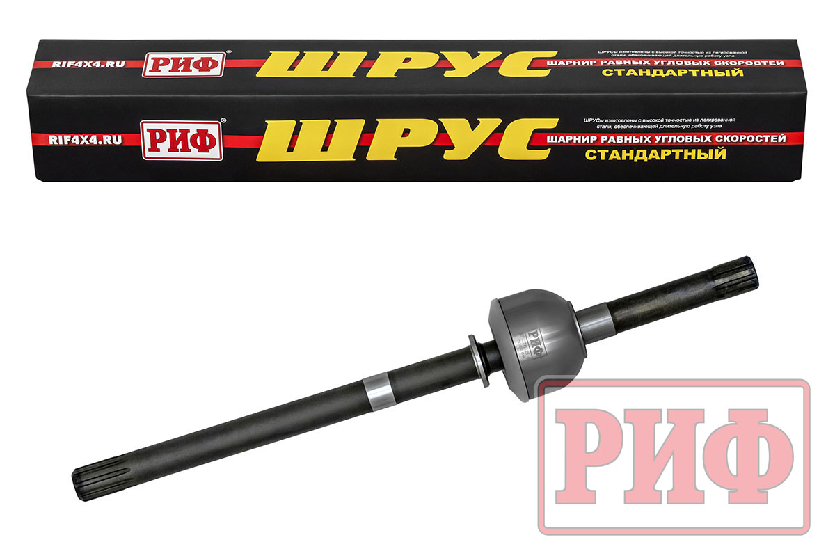 По этой причине, к выбору ШРУСа всегда подходят максимально тщательно. Если внедорожник стандартный, эксплуатируется на штатных или слегка увеличенных колесах, без увеличения мощности двигателя и передаточных чисел трансмиссии, то можно использовать шарнир идентичный по характеристикам заводскому. Стандартный ШРУС РИФ обладает абсолютно одинаковыми характеристиками с заводским шарниром по передаваемому крутящему моменту (4800 Нм) и максимальным углам работы (47 градусов). Он выполнен с высокой точностью из качественной конструкционной легированной стали. На выходе с производства все изделия проходят обязательный контроль качества.
