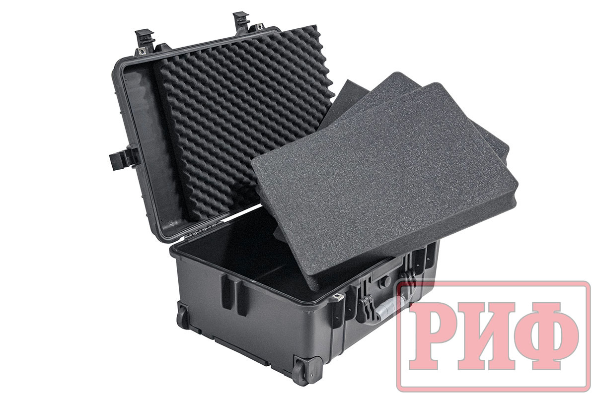 Защитные кейсы РИФ изготовлены из противоударного и чрезвычайно прочного пластика – его можно переехать на автомобиле, и ценное содержимое не пострадает. Кейсы абсолютно герметичны и содержимое кейса гарантировано защищено от доступа пыли и влаги благодаря резиновой прокладке и плотно закрывающейся крышке.