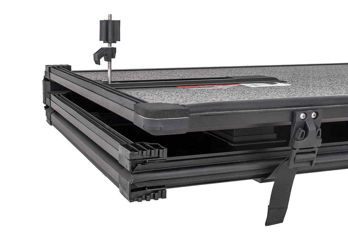 Крышка имеет складную 3-х секционную конструкцию, повторяющую форму кузова автомобиля.