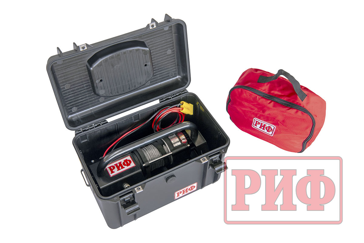 Лебёдка переносная РИФ 3500ASR c малой площадкой и проводами, синтетический трос (в защитном кейсе)