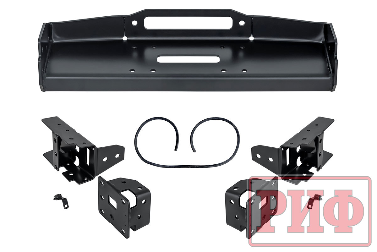 Отличительной особенностью площадки РИФ является её особо прочная усиленная конструкция. Площадка устанавливается на раму автомобиля и не требует никаких вмешательств в конструкцию, кроме вырезания в штатном бампере аккуратного отверстия под клюз или ролики для троса.
