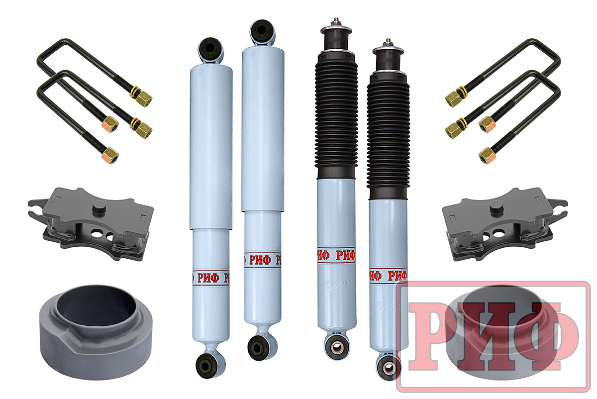 Все компоненты лифт-комплектов РИФ разработаны специально для эксплуатации внедорожника в тяжелых условиях на различных дорожных покрытиях.