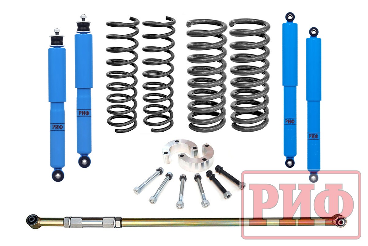 Все компоненты лифт-комплектов РИФ разработаны специально для эксплуатации внедорожника в тяжелых условиях на различных дорожных покрытиях.