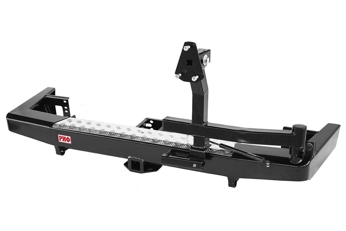 Задний силовой бампер РИФ надежно защитит кузов автомобиля на бездорожье или в городе в случае непредвиденных инцидентов. Бампер оборудован упорами под хай джек и буксирными проушинами для работы с рывковой или буксировочной стропой.