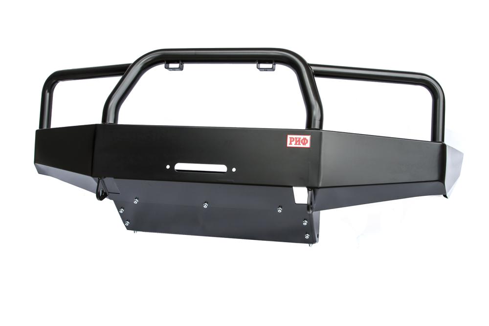 Передний силовой бампер РИФ служит для защиты автомобиля на бездорожье и в городе. В случае контакта или легкого столкновения с препятствием в виде камней, бревен, пней, колей или незадачливых водителей, риск получить серьезные повреждения машины существенно уменьшается, а это очень важно в экспедициях и в повседневной жизни. Бампер без кенгурина весит меньше, чем бампер с кенгурином, он не только защитит, но и украсит внедорожник благодаря эффектному и элегантному дизайну.