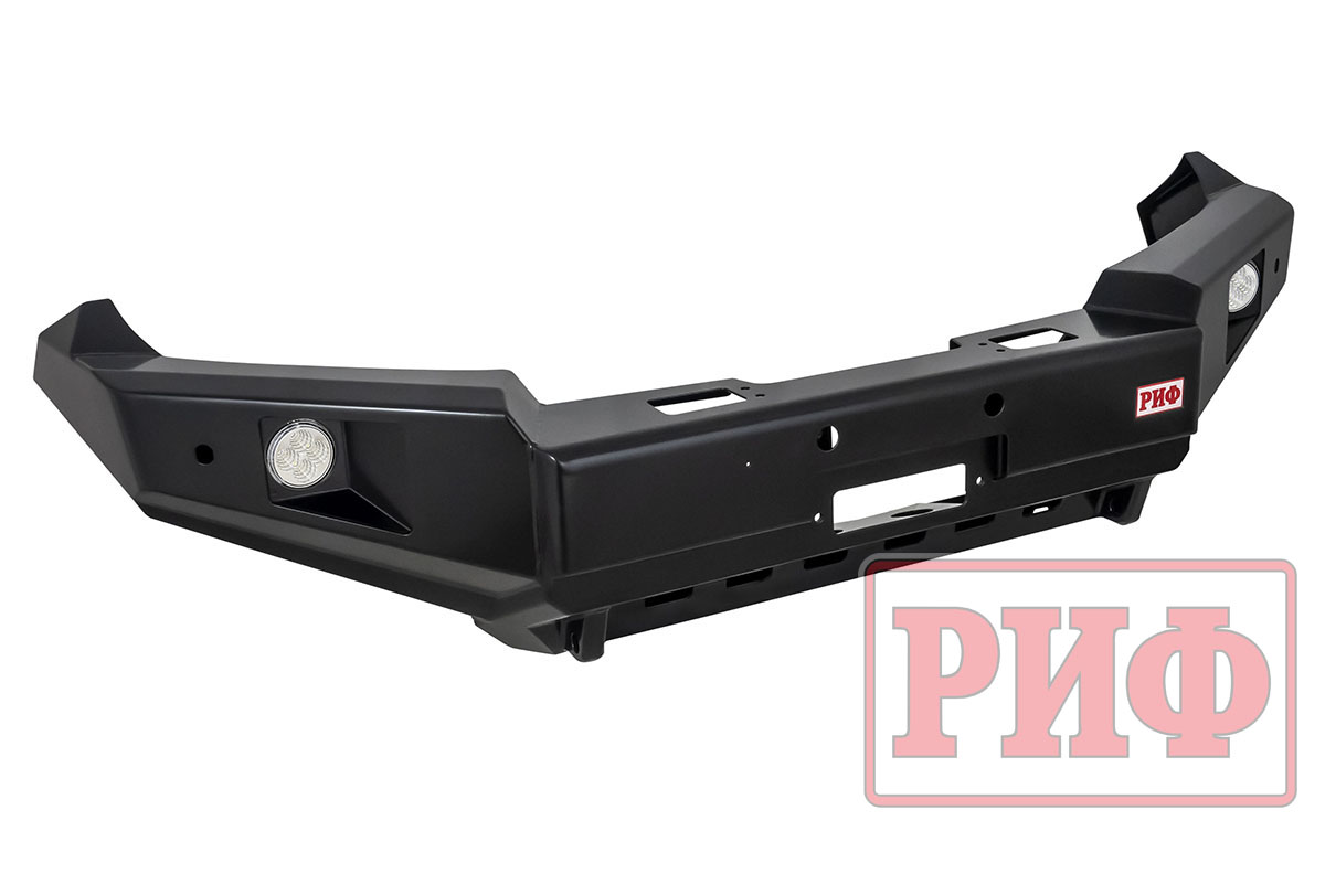 Передний силовой бампер РИФ без защитной дуги служит для защиты автомобиля на бездорожье и в городе. В случае контакта или легкого столкновения с препятствием в виде камней, бревен, пней, колей или незадачливых водителей, риск получить серьезные повреждения машины существенно уменьшается, а это очень важно в экспедициях и в повседневной жизни. Бампер без кенгурина весит меньше, чем бампер с кенгурином, он не только защитит, но и украсит внедорожник благодаря эффектному и элегантному дизайну.