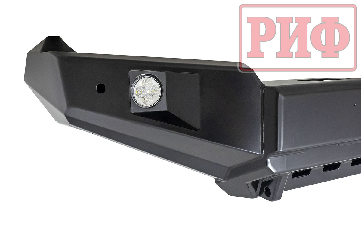 Бампер штатно комплектуется мощными и экономичными светодиодными фарами водительского света РИФ, модель SM-810F. Они формируют плотный пучок дополнительного света, который рассеивается перед автомобилем. Эти фары хорошо освещают дорогу и обочины, обеспечивая более широкую видимость по сторонам. Являют собой неплохое дополнение ближнего света.
