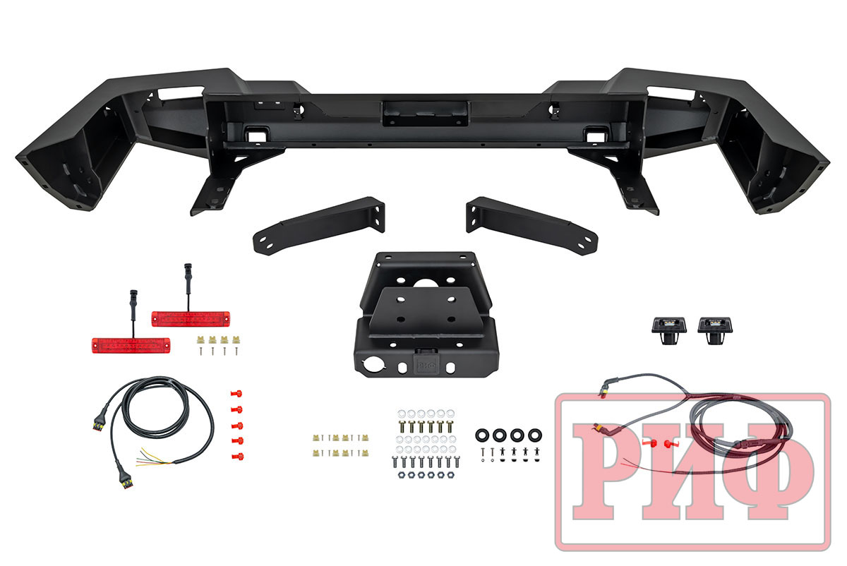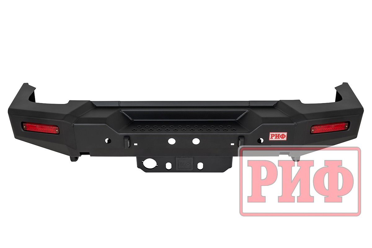 Задний силовой бампер РИФ надежно защитит кузов автомобиля на бездорожье или в городе в случае непредвиденных инцидентов. Бампер оборудован упорами под хай джек и буксирными проушинами для работы с рывковой или буксировочной стропой.