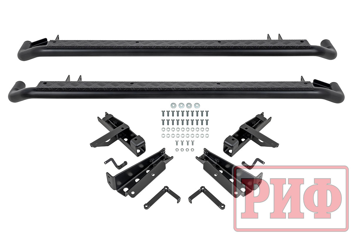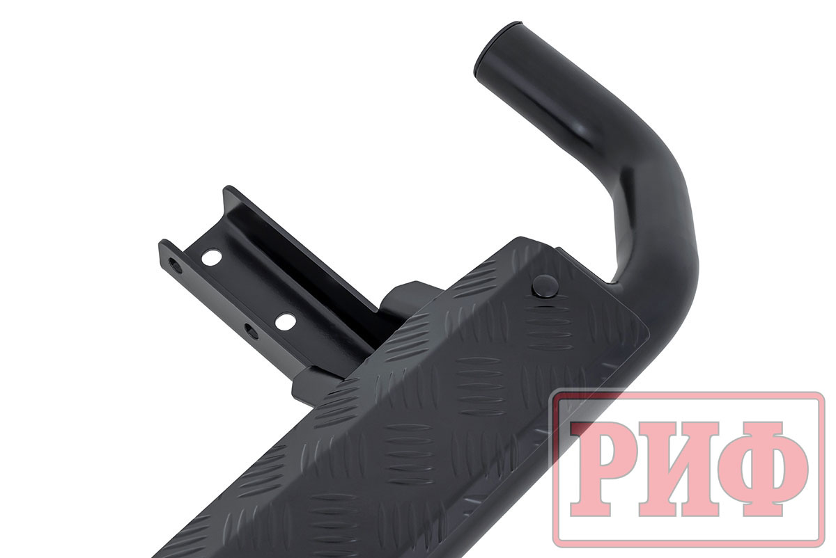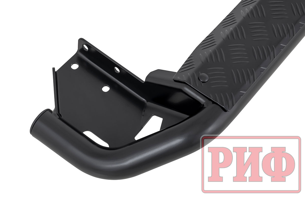 Конструкция порогов РИФ крайне прочна и долговечна, пороги рассчитаны на эксплуатацию в тяжелых условиях – они изготовлены из цельной стальной трубы без применения сварки. Пороги крепятся к раме с помощью стремянок.