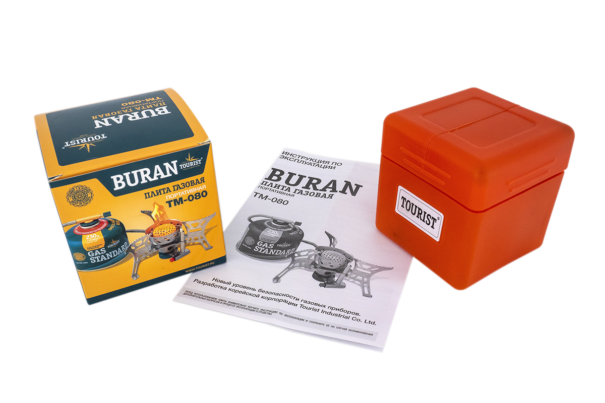 Мини газовая плита BURAN с функцией обогревателя - очень мощная и практичная портативная газовая плита со встроенным ветрозащитным экраном.