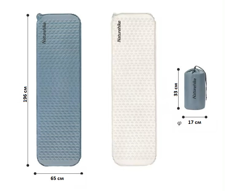Коврик самонадувающийся Naturehike, 196x65x3,5 см, увеличенный, светло-синий