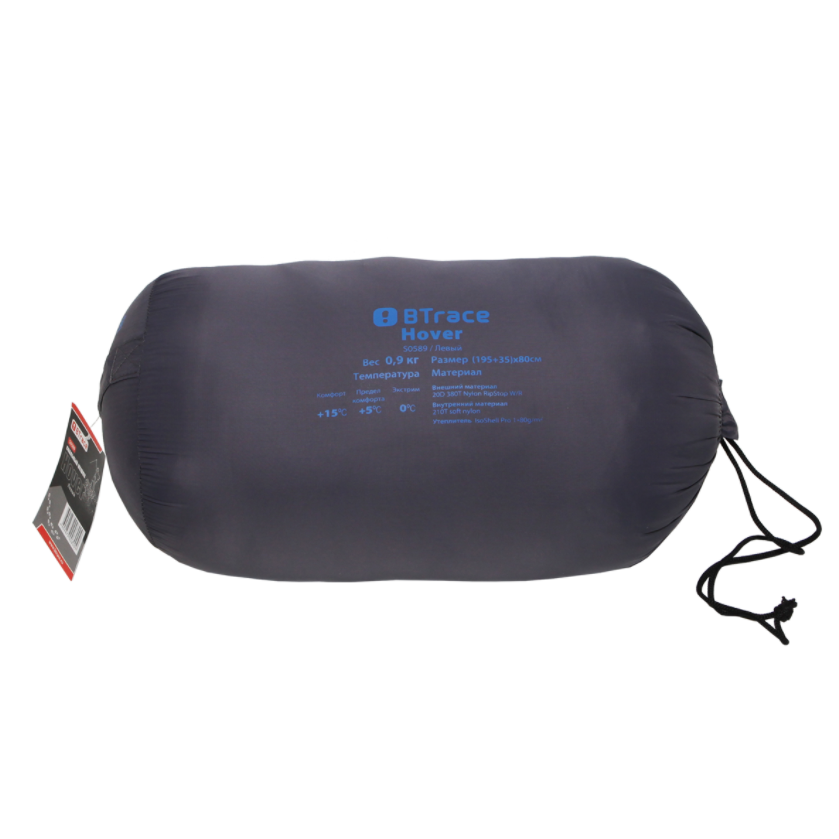 Мешок спальный BTrace Hover (Правый,Серый/Синий), (ТК: +5C)