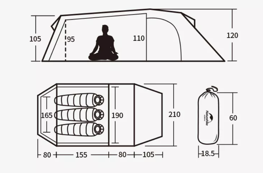 - Материал внутреннего тента: 20D нейлон, сетка 210Т полиэстер