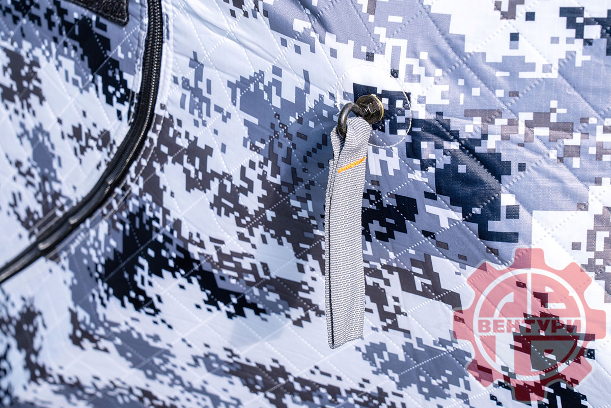 Удобные застежки позволят ловить рыбу внутри палатки, тем самым сберечь тепло. Каркас из стекловолокна обеспечивает надежное сохранение кубической формы в самый сильный ветер и препятствует накоплению влаги и снега на крыше палаток.
