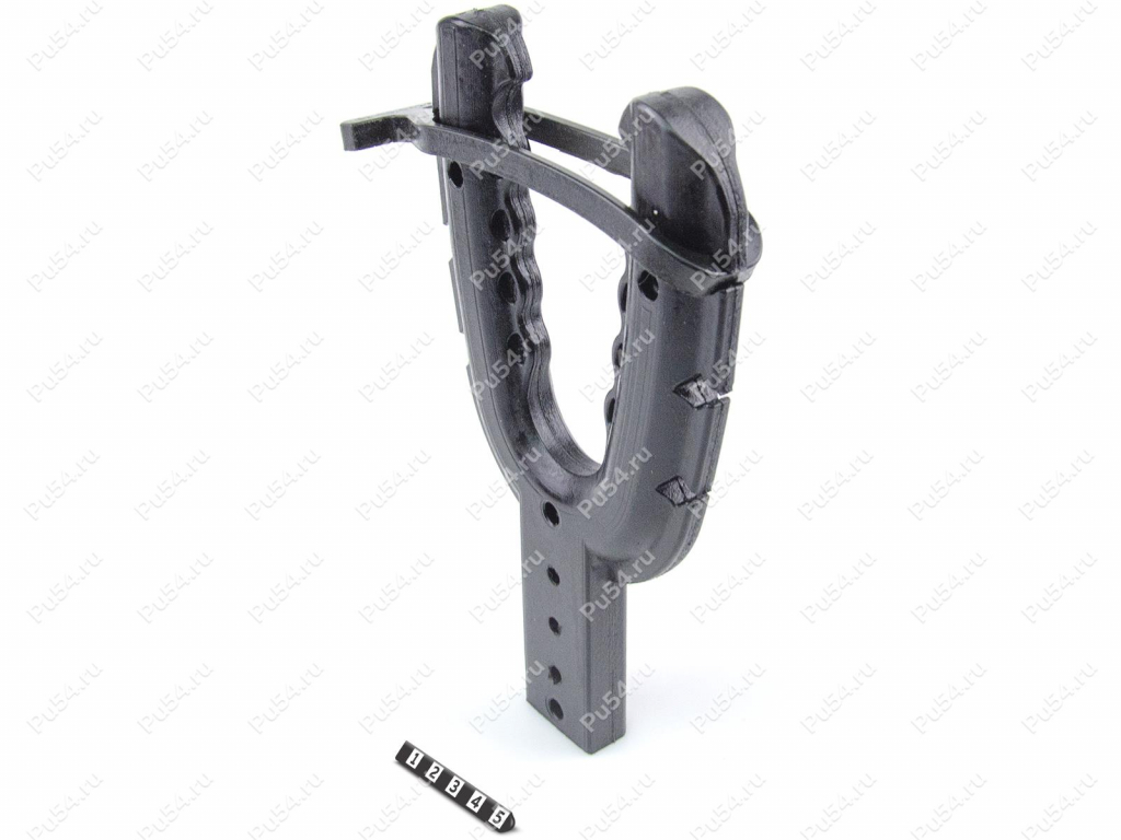 Прямое исполнение основания позволяет закрепить рогатку так, что закрепляемый предмет оказывается расположен перпендикулярно плоскости крепления.